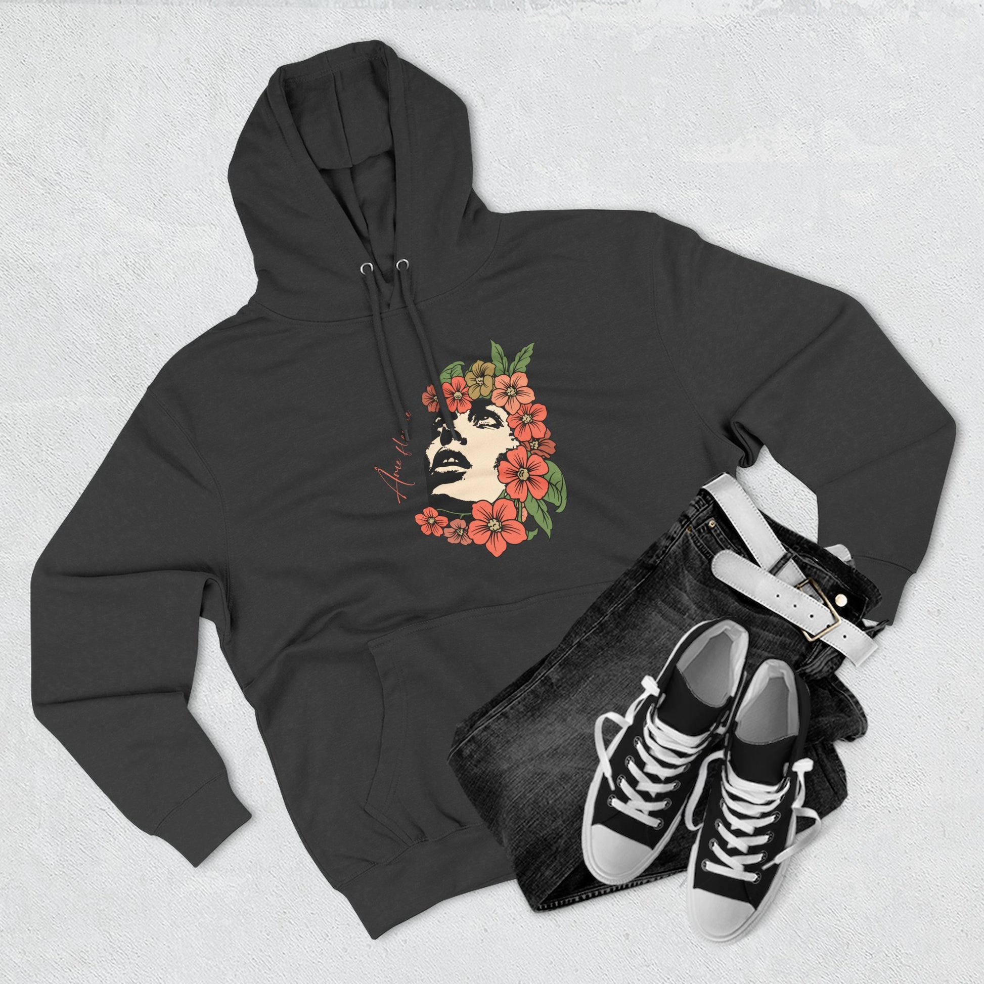 Un sweat à capuche polaire confortable à trois panneaux, orné d'un motif Floral Soul, qui dégage une atmosphère apaisante et paisible. Parfait pour les amateurs d'œuvres d'art inspirées de la nature et qui aiment rester au chaud et à l'aise. Idéal pour une tenue décontractée ou pour se détendre à la maison. Idéal pour les fêtes, les anniversaires ou comme cadeau pour une personne appréciant les motifs floraux.